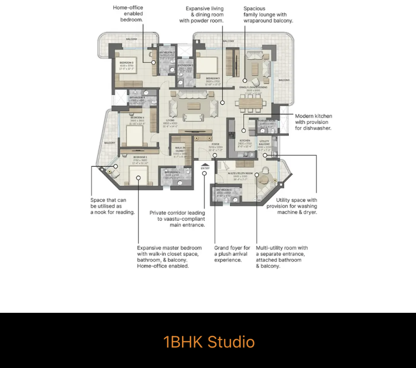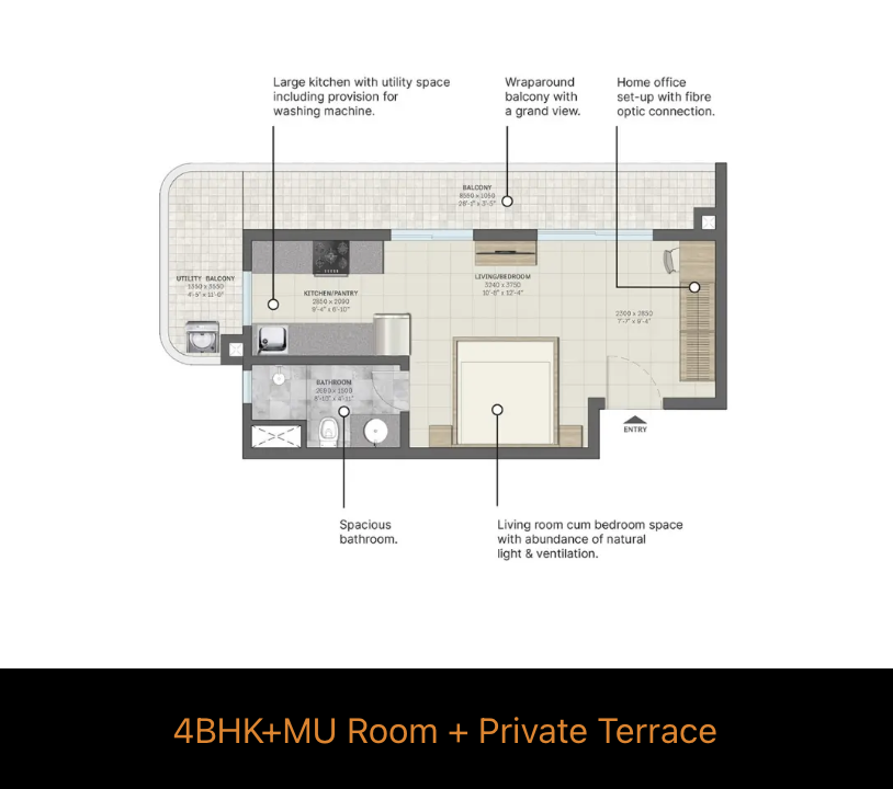 4 BHK + MU + Private Terrace 4077 Sq. Ft. On Request