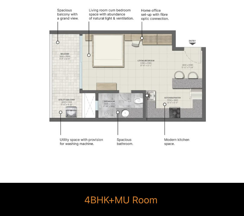 4 BHK + MU 3914 - 4008 Sq. Ft. On Request